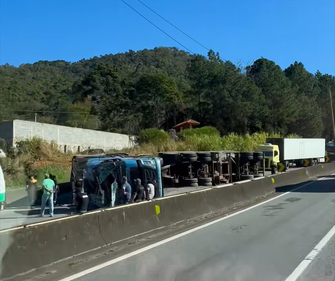 Um acidente registrado no km 924,5 da BR-381, em Camanducaia (MG), sentido Belo Horizonte, causou a interdição total da rodovia na tarde desta terça-feira (25).