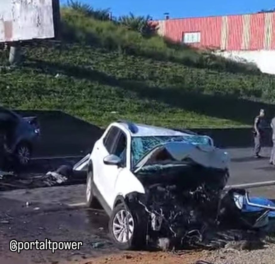 Durante a fuga, já próximo ao Posto São Cristóvão, o assaltante colidiu violentamente com um T-Cross branco, com placas de São Paulo, que seguia no sentido contrário. Com o impacto, os dois condutores morreram na hora.