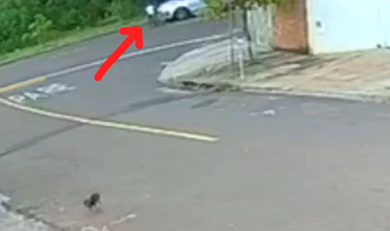Câmeras de segurança registraram o momento em que os dois descem a Rua Bernardino Ferreira Chaves Neto e avançam o cruzamento com a Rua Terezinha Leite Fernandes. O impacto ocorreu quando um carro, que seguia pela via preferencial, atingiu as crianças.