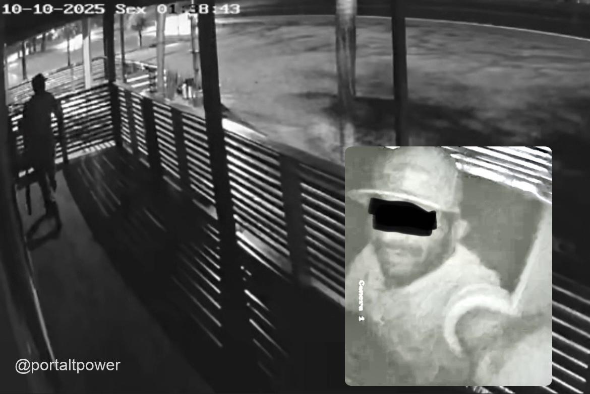 As imagens mostram dois indivíduos se aproximando do local. Um deles salta a grade do estabelecimento, conversa rapidamente com o comparsa e, em seguida, se dirige diretamente ao equipamento. Em poucos segundos, a câmera é arrancada e levada pela dupla — justamente o dispositivo que registrou toda a ação.