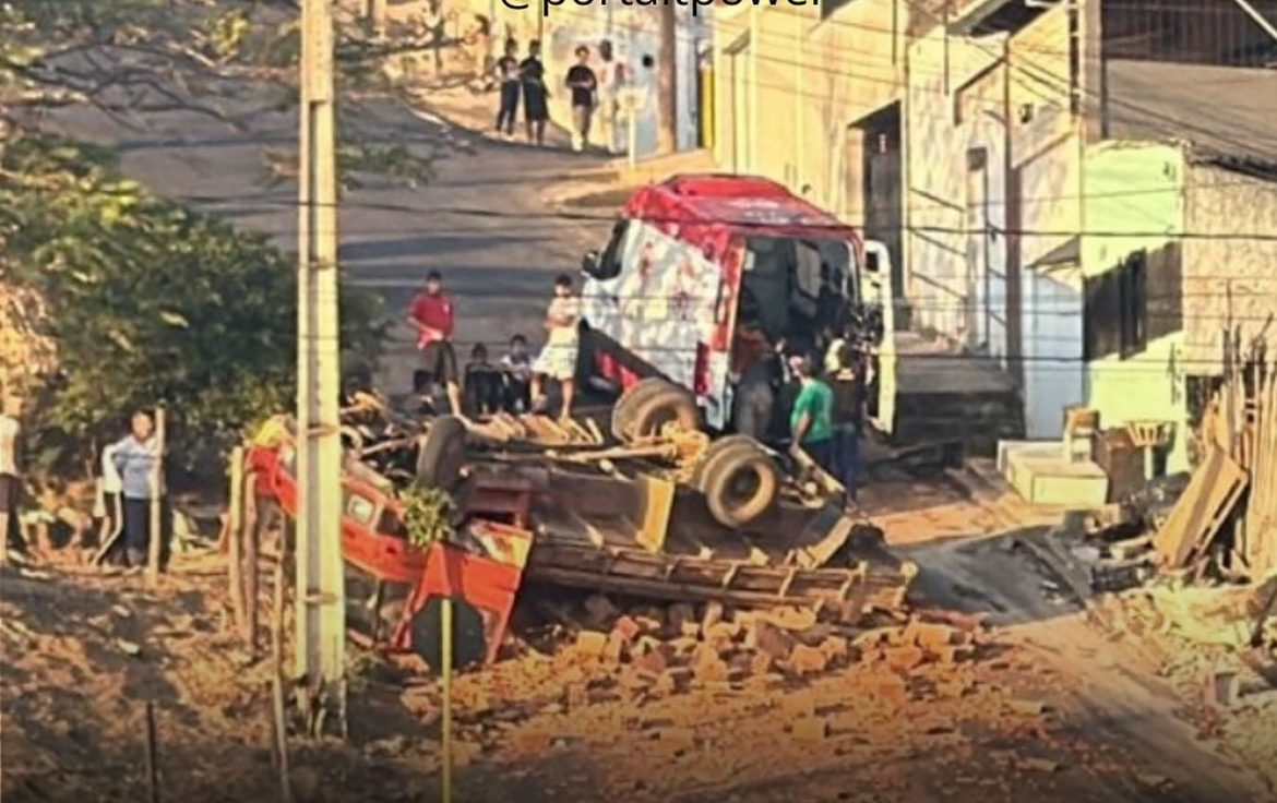 Um caminhão carregado com tijolos tombou na tarde desta sexta-feira (15) no bairro Mont Serrat, em Varginha (MG). Segundo informações, o veículo não conseguiu subir a avenida João Martinho da Ponte e acabou descendo até tombar no início da rua.