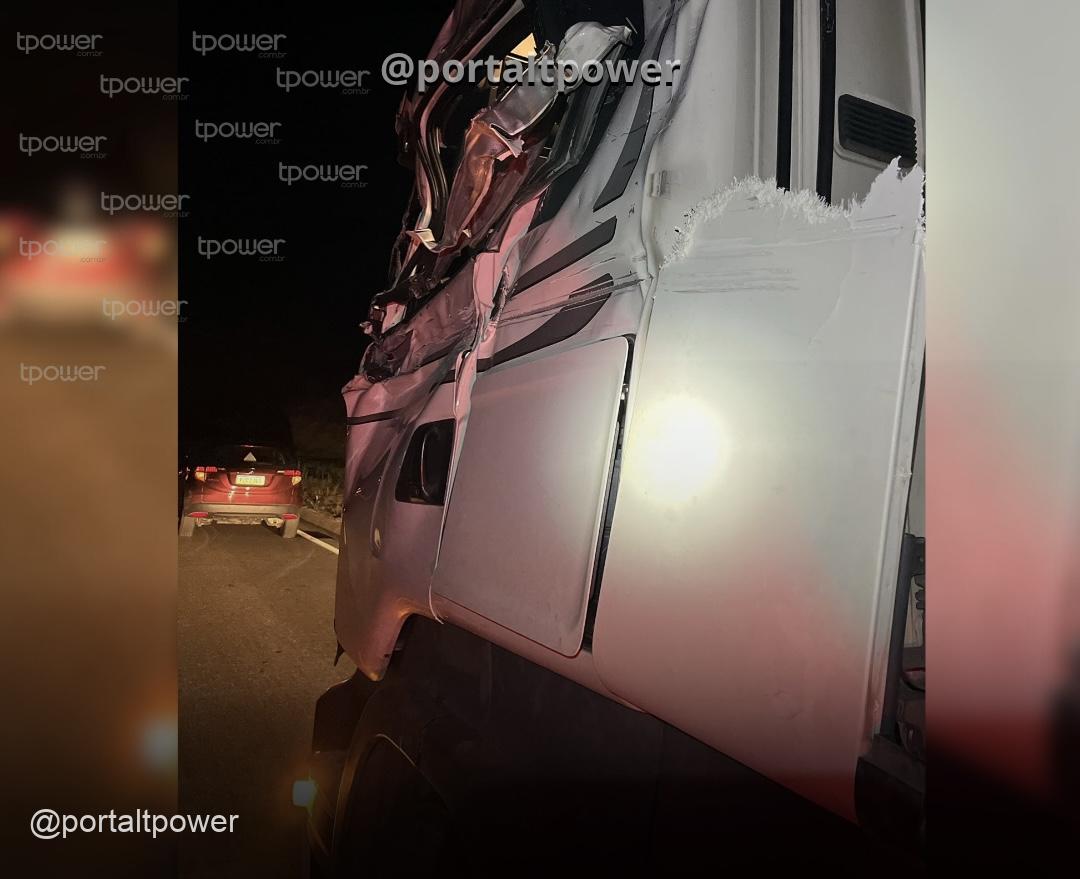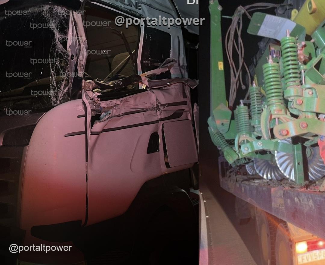 Um acidente envolvendo dois veículos de carga foi registrado na ponte do quilômetro 214 da rodovia Agnaldo Salles, no trecho conhecido como “pontinha”, que marca a divisa entre os municípios de Paraguaçu e Elói Mendes (MG). A colisão ocorreu entre um caminhão com carga excedente, com placas de Machado (MG), e a cabine de uma carreta de Santa Maria de Jeribá (ES).
