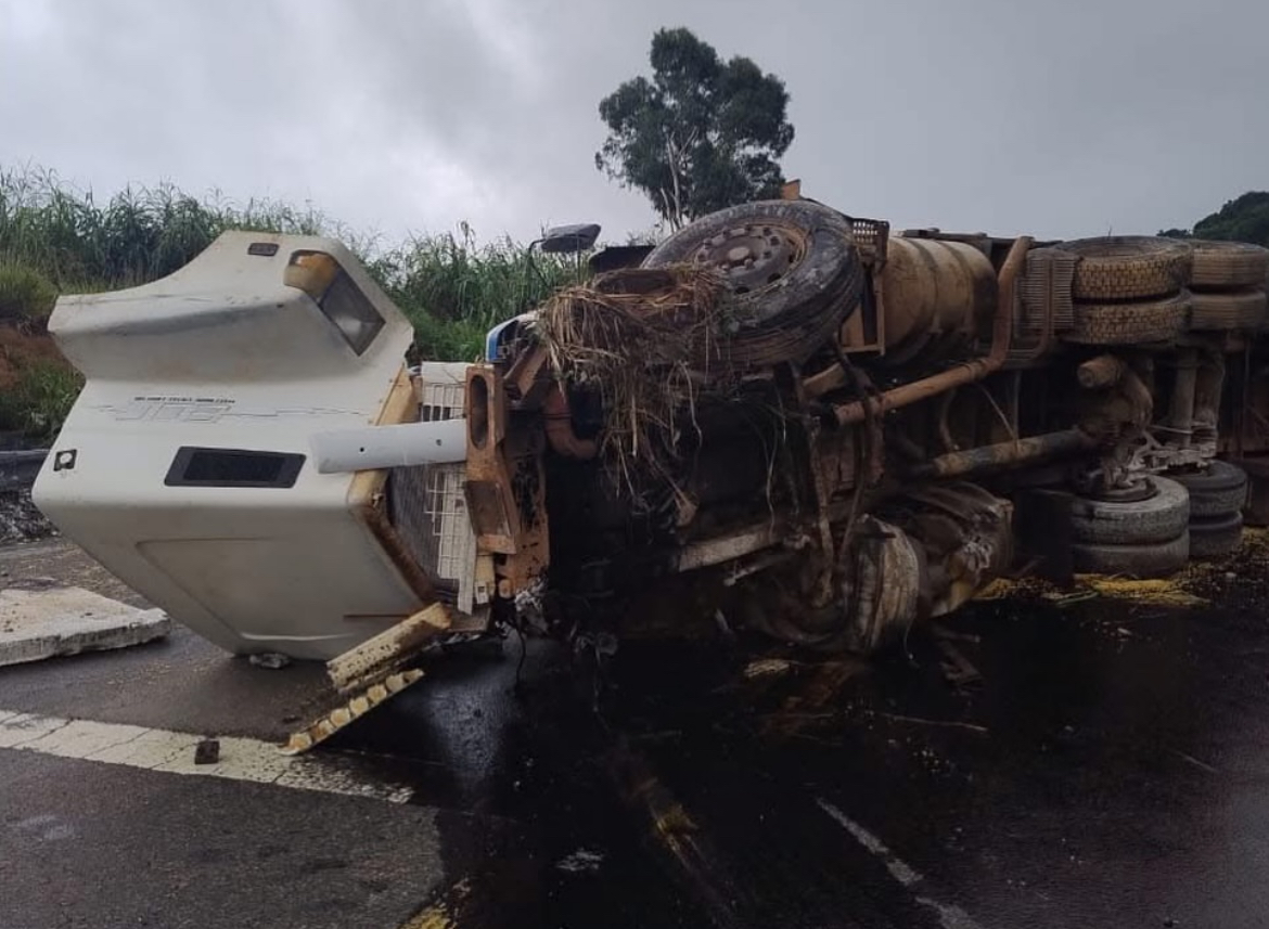 Por volta das 15h desta quarta-feira, 16 de abril, o Corpo de Bombeiros de Guaxupé atendeu a um tombamento de carreta na BR-146, no trecho conhecido como Serra de São Pedro da União.