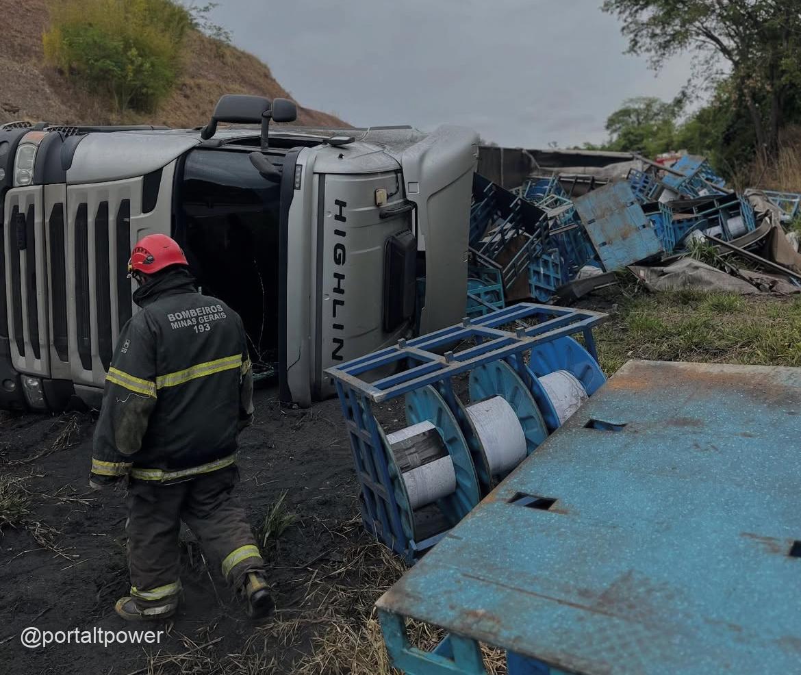 Uma carreta tombou na BR-494, nesta quinta-feira (9), no trecho entre Oliveira e Carmo da Mata, sentido Divinópolis. O Corpo de Bombeiros Militar de Oliveira foi acionado para atender a ocorrência.