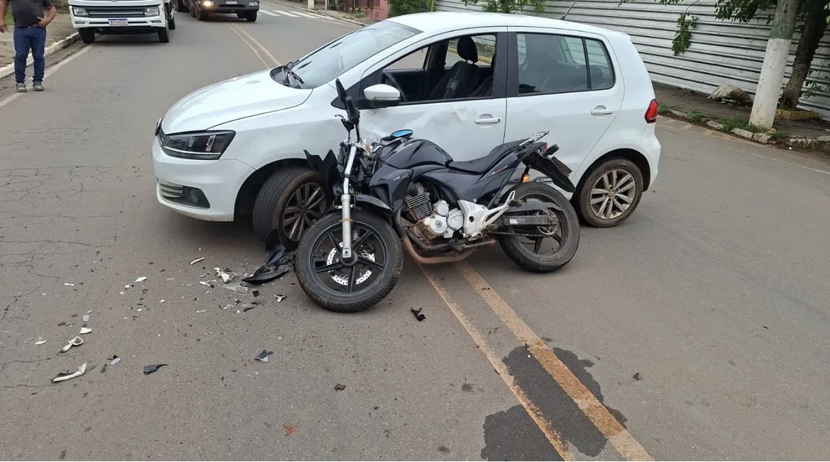 De acordo com informações, um veículo VW Fox, que operava como táxi, realizava uma manobra de retorno ao sair do estacionamento de um Supermercado quando houve a colisão transversal com uma motocicleta que trafegava pela avenida no sentido do trevo de entrada da cidade. O impacto atingiu a lateral do carro.