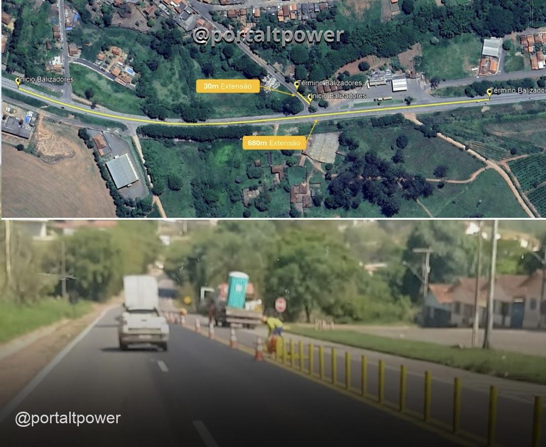 Segue em andamento a instalação de mais de 300 balizadores no km 202 da MGC-491, em Paraguaçu, entre a entrada da Praça da Bikinha e o posto da rodovia. A medida busca organizar o tráfego, coibir conversões irregulares e reduzir o risco de acidentes no trecho, uma demanda antiga da comunidade. Também serão instalados na José Camilo da Costa. Com as mudanças, o acesso aos bairros deverá ser feito pelos retornos nas rotatórias dos km 201 e 204, no trevo da Fitovet ou do Avião.