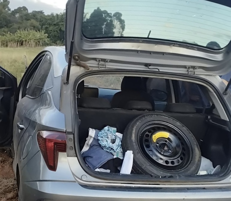 Durante a tentativa de abordagem, o condutor desobedeceu às ordens de parada e iniciou fuga em alta velocidade. A perseguição se estendeu até a entrada do perímetro urbano, quando o suspeito abandonou o carro e tentou fugir a pé, se escondendo em uma área do bairro São Lucas.