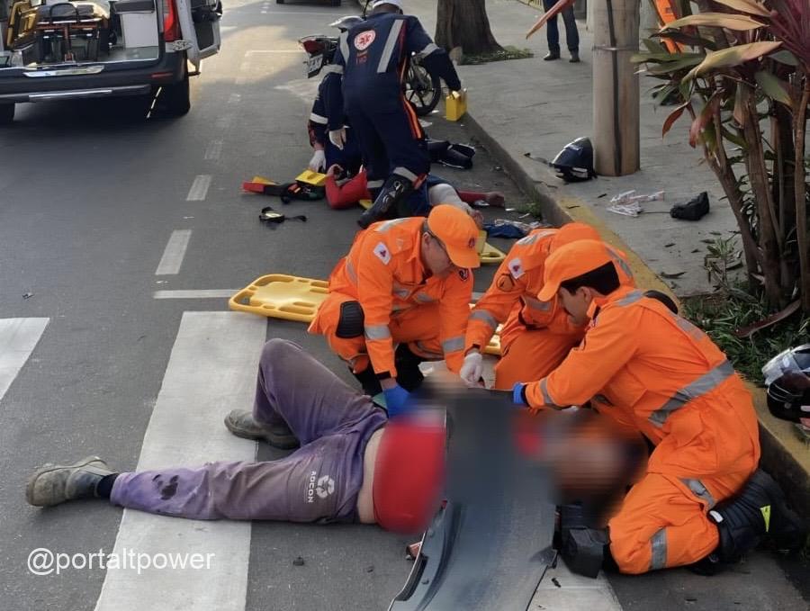 Com o impacto, os dois ocupantes da moto ficaram feridos. O condutor sofreu fratura na perna esquerda e o passageiro teve fratura no braço. As equipes do Corpo de Bombeiros de Alfenas chegaram rapidamente ao local, realizando a imobilização das áreas afetadas e a estabilização cervical das vítimas, garantindo um atendimento técnico e preciso.