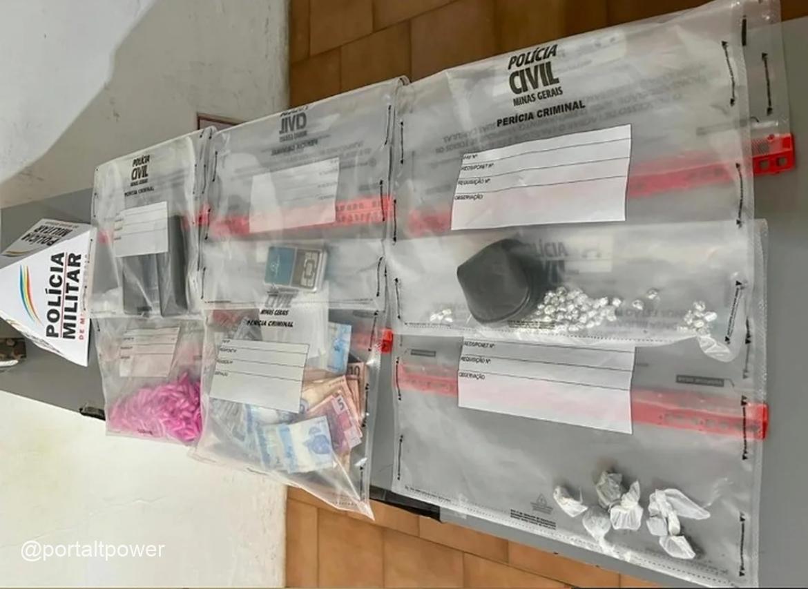 No local, os policiais apreenderam 93 pinos de cocaína, 78 pedras de crack, seis buchas de maconha, uma balança de precisão, anotações do tráfico e R$ 2.337 em dinheiro. Também foram recolhidos um automóvel Fiat Palio e uma motocicleta Honda XRE 300, ambos utilizados pelos suspeitos nas atividades ilícitas.