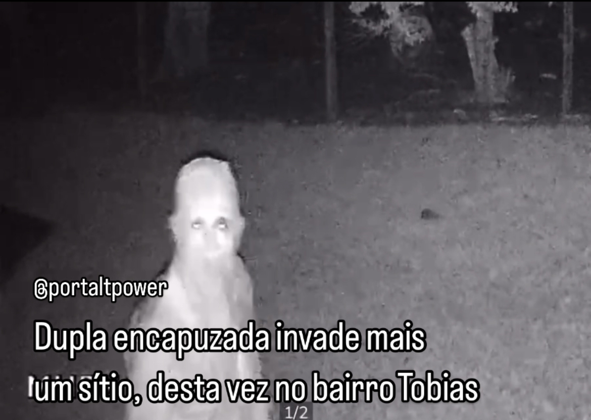 Imagens de câmeras de segurança instaladas na propriedade flagraram os meliantes em diversos pontos do sítio. Conforme análise do material, a dupla permaneceu na área por aproximadamente três horas.