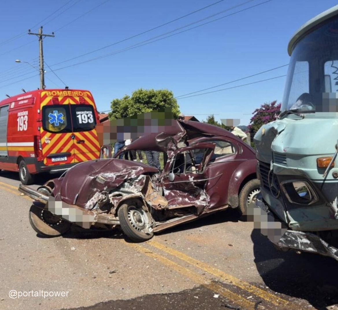 De acordo com informações, Celso Volpato, de 66 anos, conduzia um VW Fusca quando colidiu de frente com um caminhão. Um motorista que trafegava logo atrás registrou o momento exato da colisão.