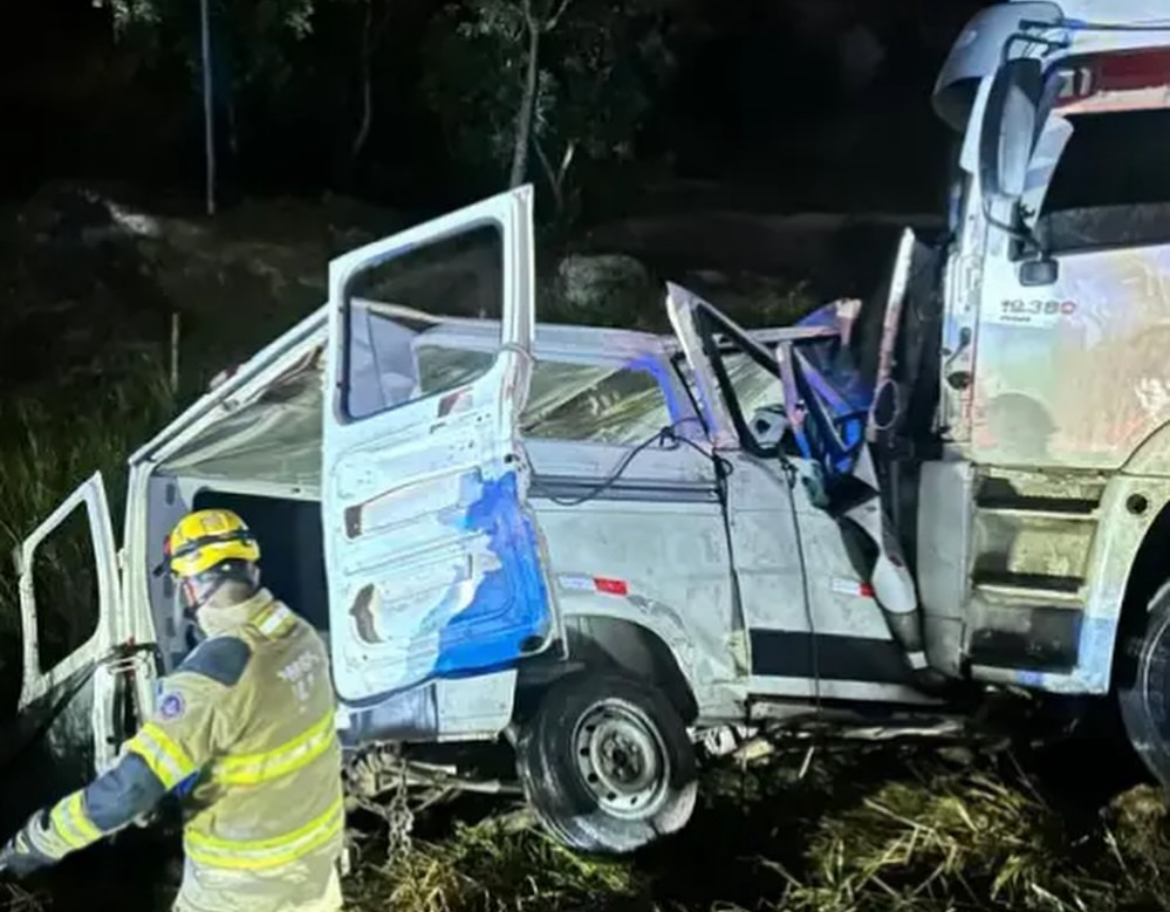 Um trágico acidente ocorrido na noite desta terça-feira (13) deixou nove mortos e dez pessoas feridas na BR-251, altura do km 446, próximo à comunidade de Barrocão, no município de Grão Mogol, no Norte de Minas. A colisão entre uma carreta e uma van aconteceu por volta das 21h30 e mobilizou equipes do Corpo de Bombeiros, SAMU, Polícia Rodoviária Federal (PRF) e da perícia da Polícia Civil.