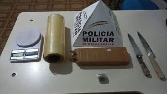 No quarto do suspeito foram apreendidos uma balança de precisão, um rolo de plástico filme usado para embalar drogas e duas facas — uma delas com resquícios da substância e a outra, segundo a denúncia, utilizada nas ameaças.