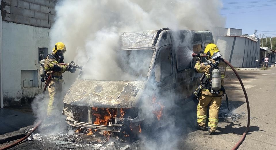 Quando chegaram, os militares encontraram uma van de transporte já totalmente tomada pelas chamas. A área foi isolada e as pessoas que passavam pelo local foram orientadas a manter distância, garantindo a segurança durante os trabalhos.