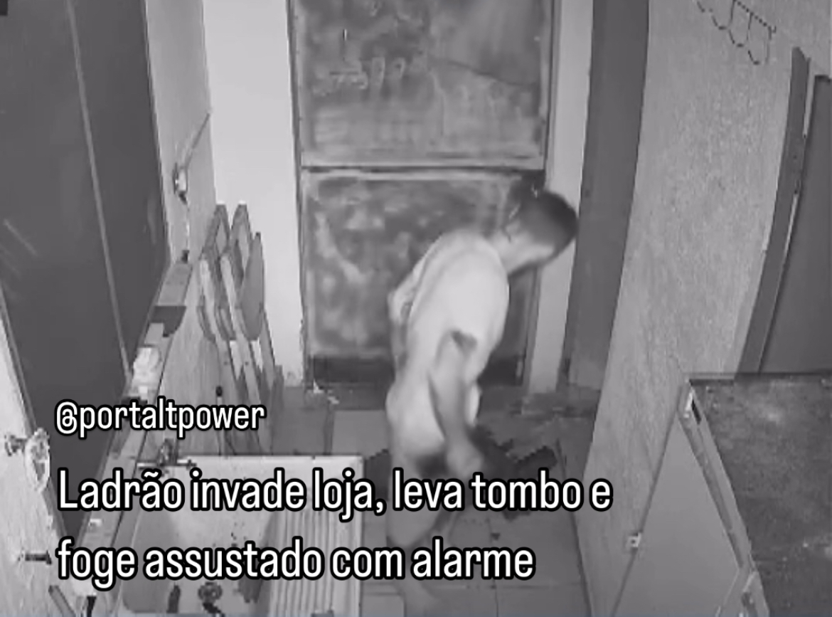 Na madrugada deste sábado (26), uma tentativa de furto em uma lanchonete chamou atenção pela forma inusitada como o criminoso agiu. Câmeras de segurança flagraram o momento em que o homem quebrou o telhado do estabelecimento e caiu de um armário no interior do local.