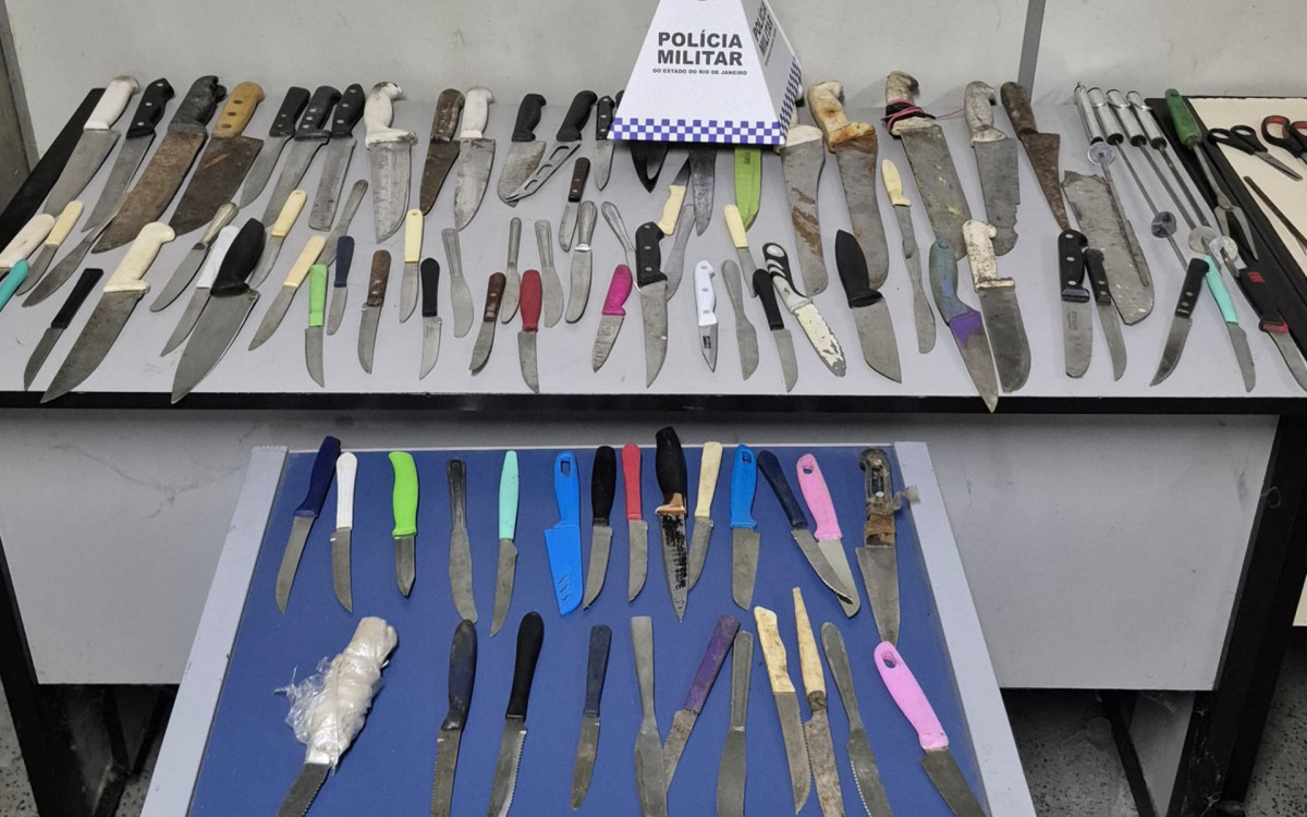Durante a operação, foram apreendidos 251 objetos perfurocortantes nos pontos de revista montados nos acessos ao local. Além disso, duas pessoas foram presas e dois menores apreendidos por envolvimento em crimes como furto e receptação.