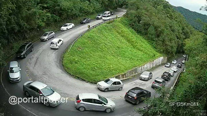 A configuração das pistas permanece inalterada, com a Serra Antiga operando como descida e a Serra Nova como subida. Os contornos seguem liberados: o Contorno Norte dá acesso à região do Massaguaçu, sentido Ubatuba, enquanto o Contorno Sul liga Caraguatatuba a São Sebastião.