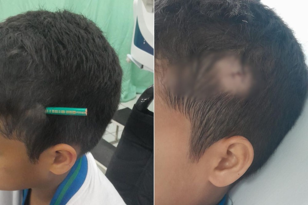 Menino de 9 anos tem lápis cravado na cabeça por colega de classe