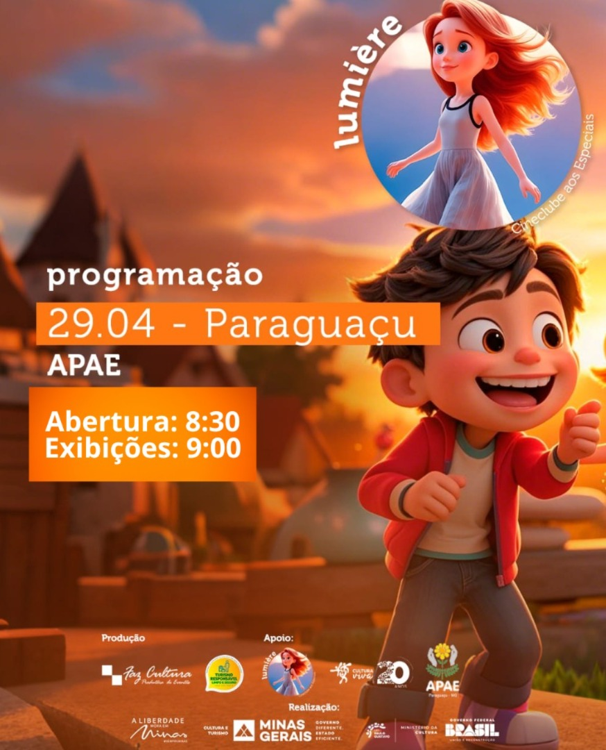 Cerca de 90 pessoas, entre crianças, adolescentes, adultos e idosos – atendidos pela Apae de Paraguaçu – terão um dia de cinema gratuito, nesta terça-feira (29). É o projeto Lumière Cineclube aos Especiais, que começa a partir de 8h30 da manhã.