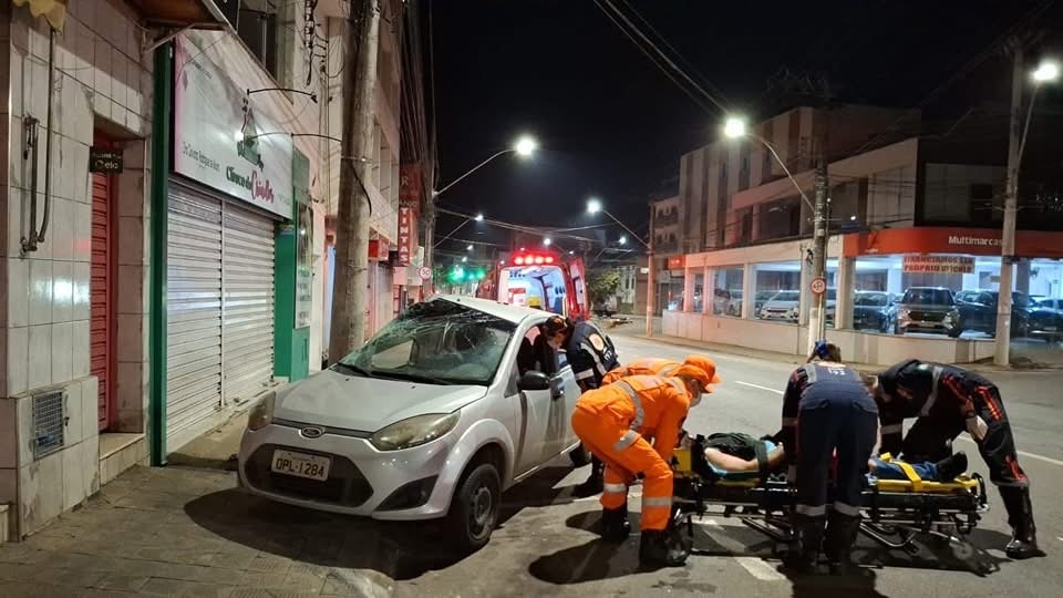 Um grave acidente foi registrado na madrugada deste domingo (08), por volta das 3h, na Praça São Charbel, em Varginha (MG). Um veículo de passeio colidiu violentamente contra um poste de iluminação pública, deixando o motorista ferido.