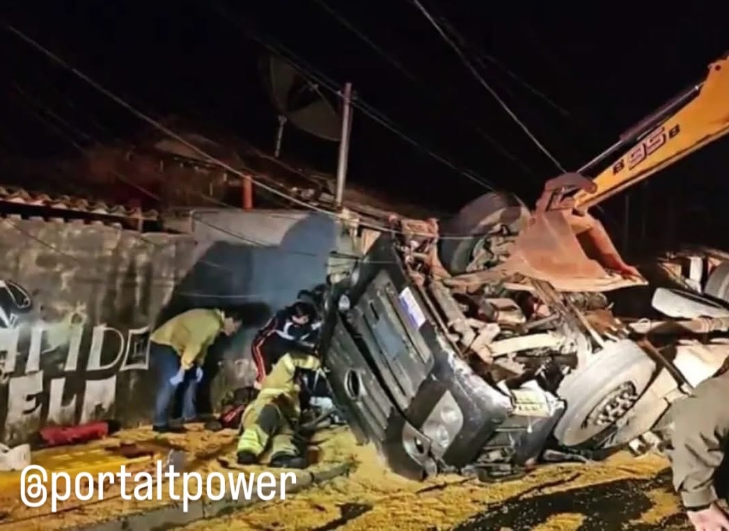 Um caminhão carregado com milho tombou na noite desta quarta-feira, 14 de maio, na BR-460, em Carmo de Minas. O acidente ocorreu por volta das 18h50, próximo ao bairro Olaria, na saída para Lambari e deixou um rastro de destruição.