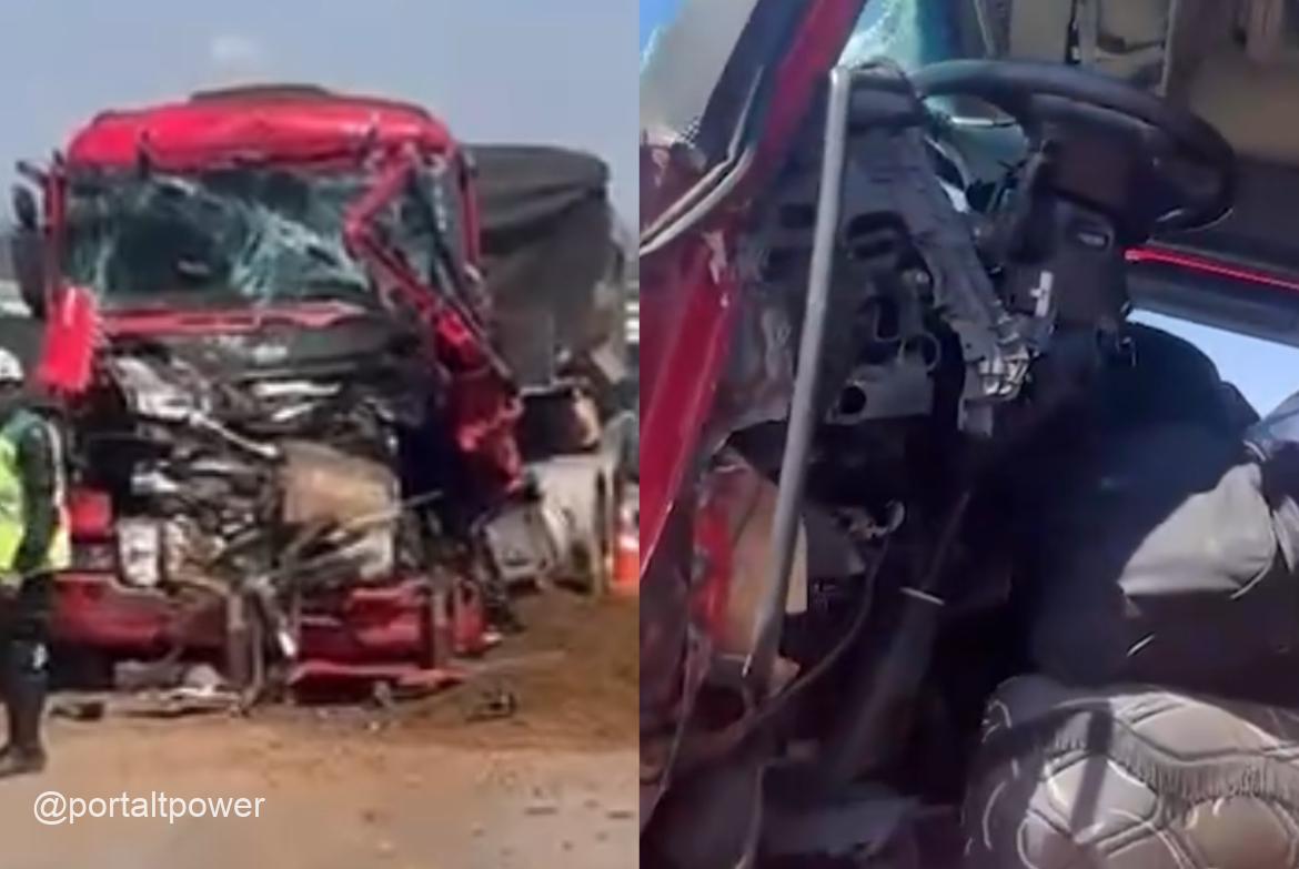 A colisão destruiu a cabine de uma das carretas, que bateu na traseira de outro veículo de carga. Imagens feitas no local mostram a frente completamente retorcida e destroços espalhados pela pista.