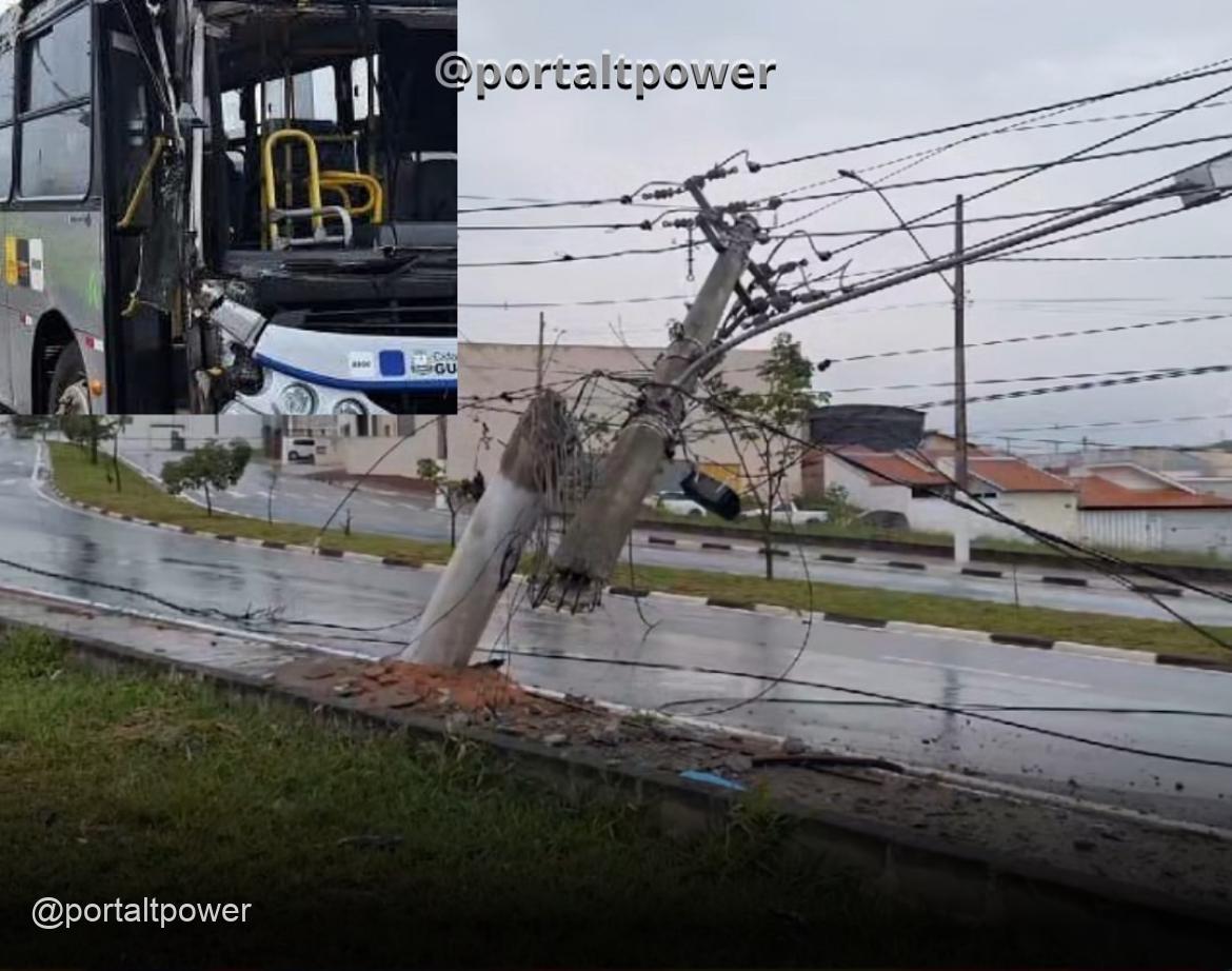 Um ônibus do transporte urbano colidiu com um poste na manhã desta terça-feira (28), na Avenida Prefeito Luiz Antônio Leite Ribeiro, no Distrito Industrial, em Guaxupé.