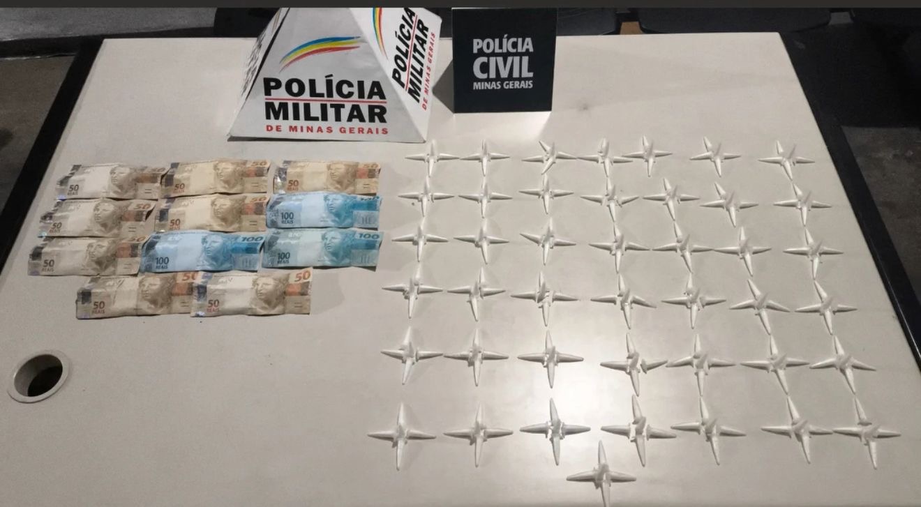 A ação resultou na apreensão de mais de 200 pinos contendo substância semelhante à cocaína. Um adolescente e um homem maior de idade, ambos suspeitos de envolvimento direto com o tráfico, foram detidos e encaminhados à Delegacia Regional de Polícia Civil.
