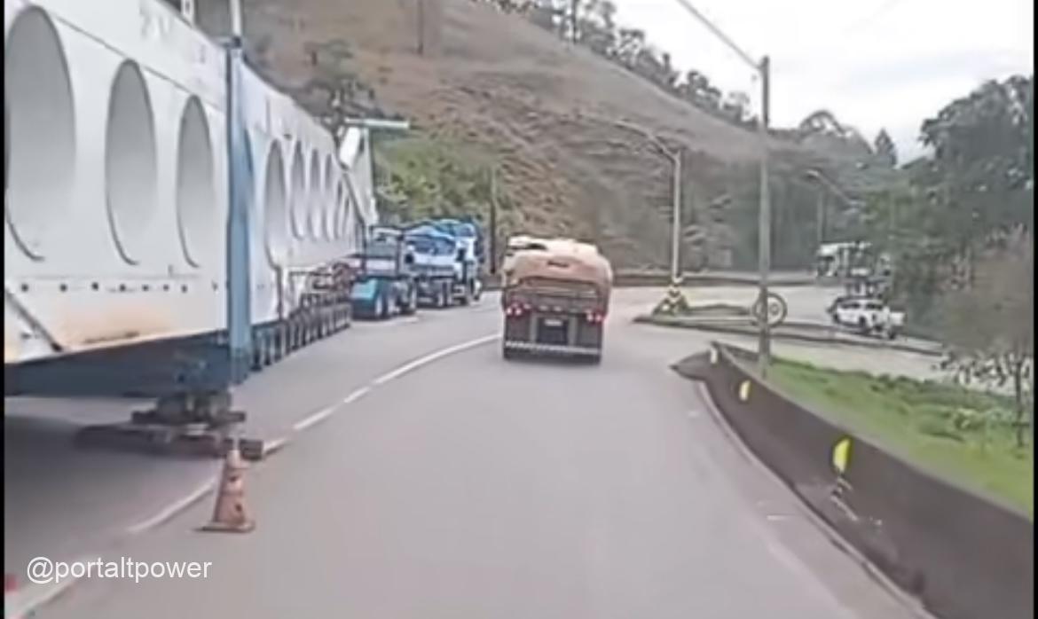 O trânsito continua lento na manhã desta terça-feira (14) na Rodovia Fernão Dias, em Camanducaia (MG), após a carreta especial de 123 metros e 850 toneladas sofrer uma pane na tarde de segunda-feira (13). O veículo, que transporta um sistema de moagem com destino ao estado de Goiás, permanece no local.