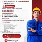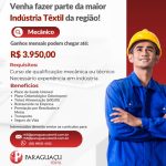 Enviar currículo para o WhatsApp (35) 99121-4152 – clicando aqui – ou pelo e-mail rh3@paraguacutextil.com.br ou rh5@paraguacutextil.com.br.