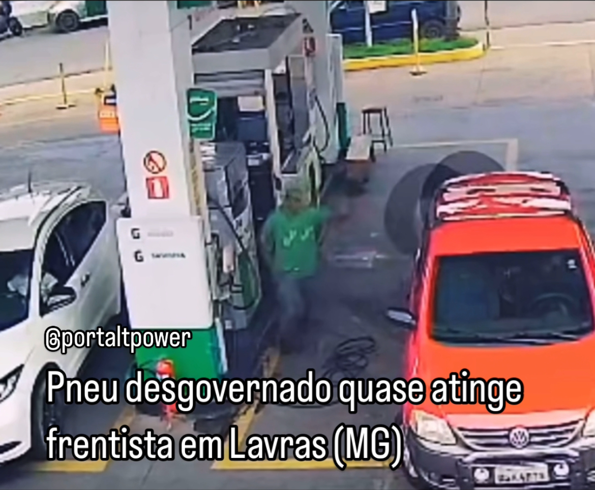 Por pouco uma tragédia não aconteceu em Lavras (MG) na manhã desta quinta-feira (24). Um pneu de caminhão, que se soltou enquanto o veículo trafegava, atravessou uma esquina movimentada e invadiu o pátio de um posto de combustíveis, no cruzamento da Rua Otacílio Negrão de Lima com a Avenida JK.