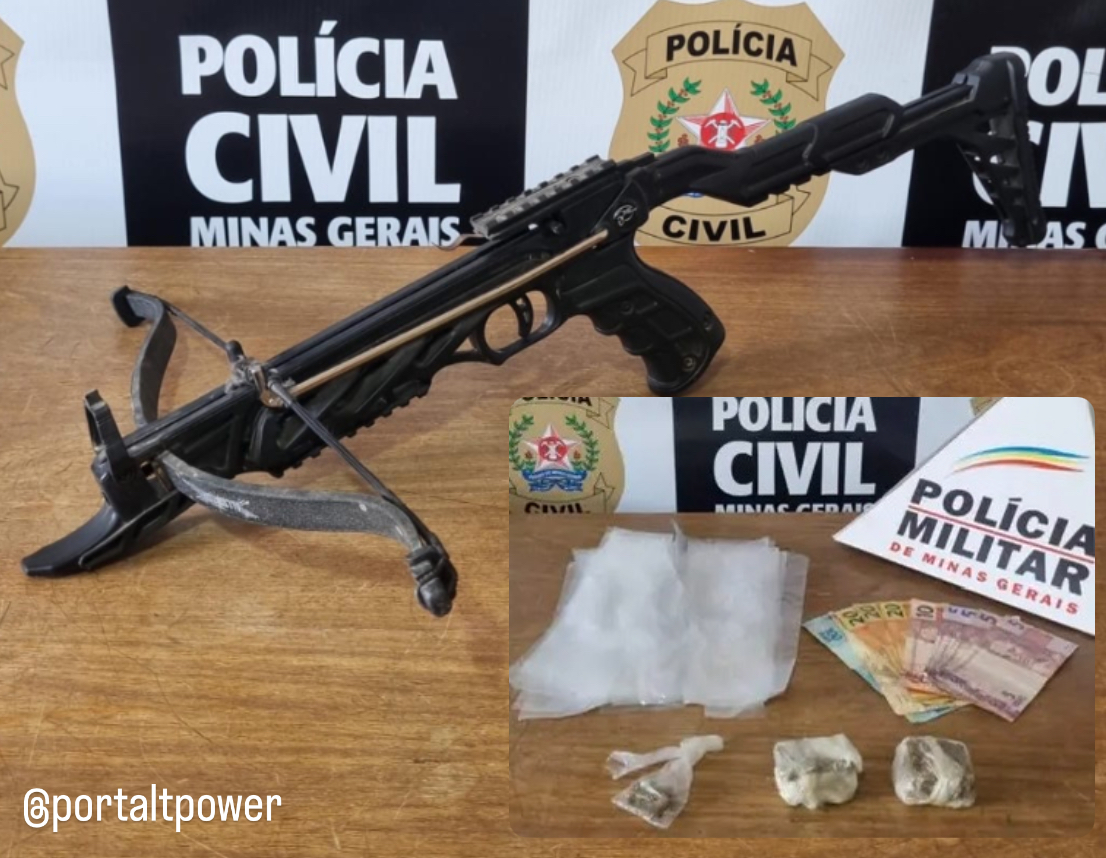 Durante o cumprimento de um mandado de busca e apreensão domiciliar, os agentes encontraram porções de maconha, embalagens típicas utilizadas para o tráfico, uma arma do tipo besta com flechas e dinheiro. Além disso, as investigações da Delegacia de Poço Fundo indicaram que o suspeito usava a residência para a venda de entorpecentes e também para o recebimento de objetos furtados.