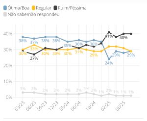 • Ruim/péssimo: 40% (mesmo percentual em junho)