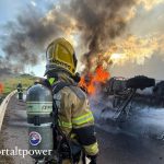 Ônibus com 52 passageiros colide com carreta parada na Fernão Dias, entre Carmópolis de Minas e Oliveira