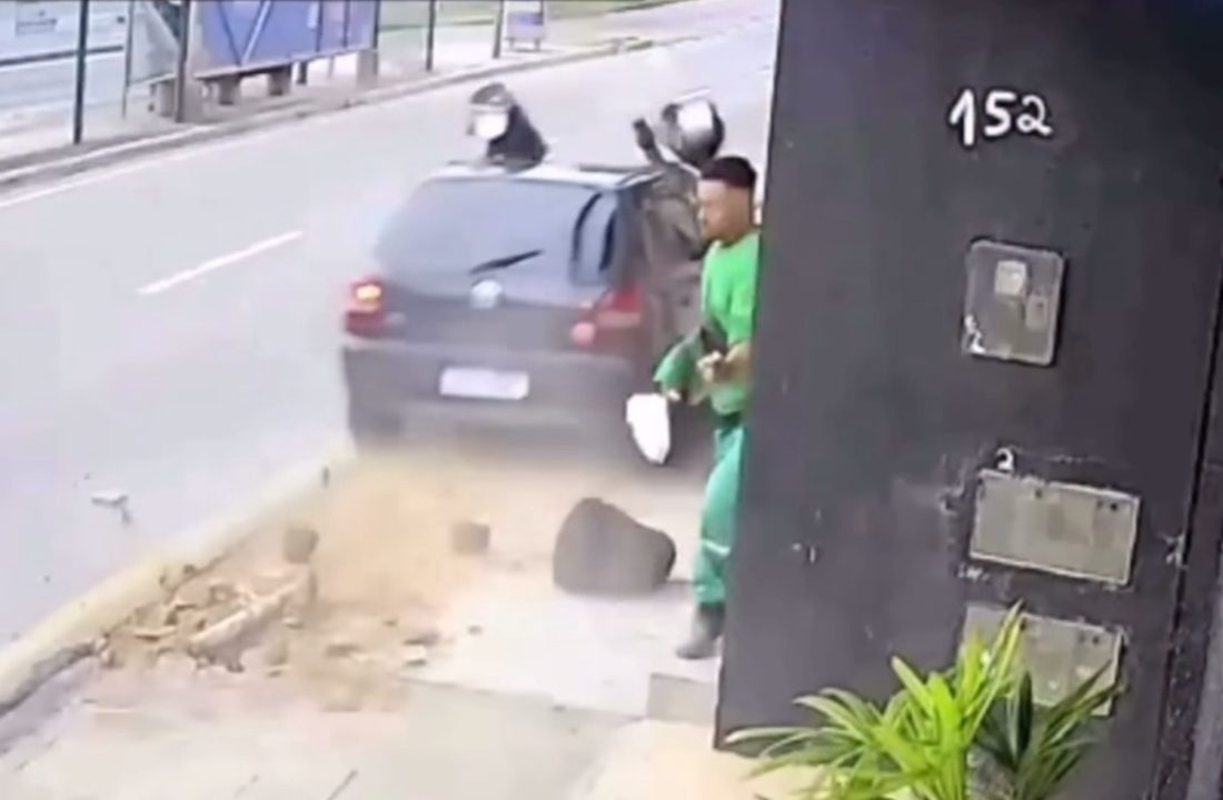 Um vídeo mostra o momento em que o Erick Danilo Santos, de 26 anos, quase foi atropelado por um carro desgovernado. O...