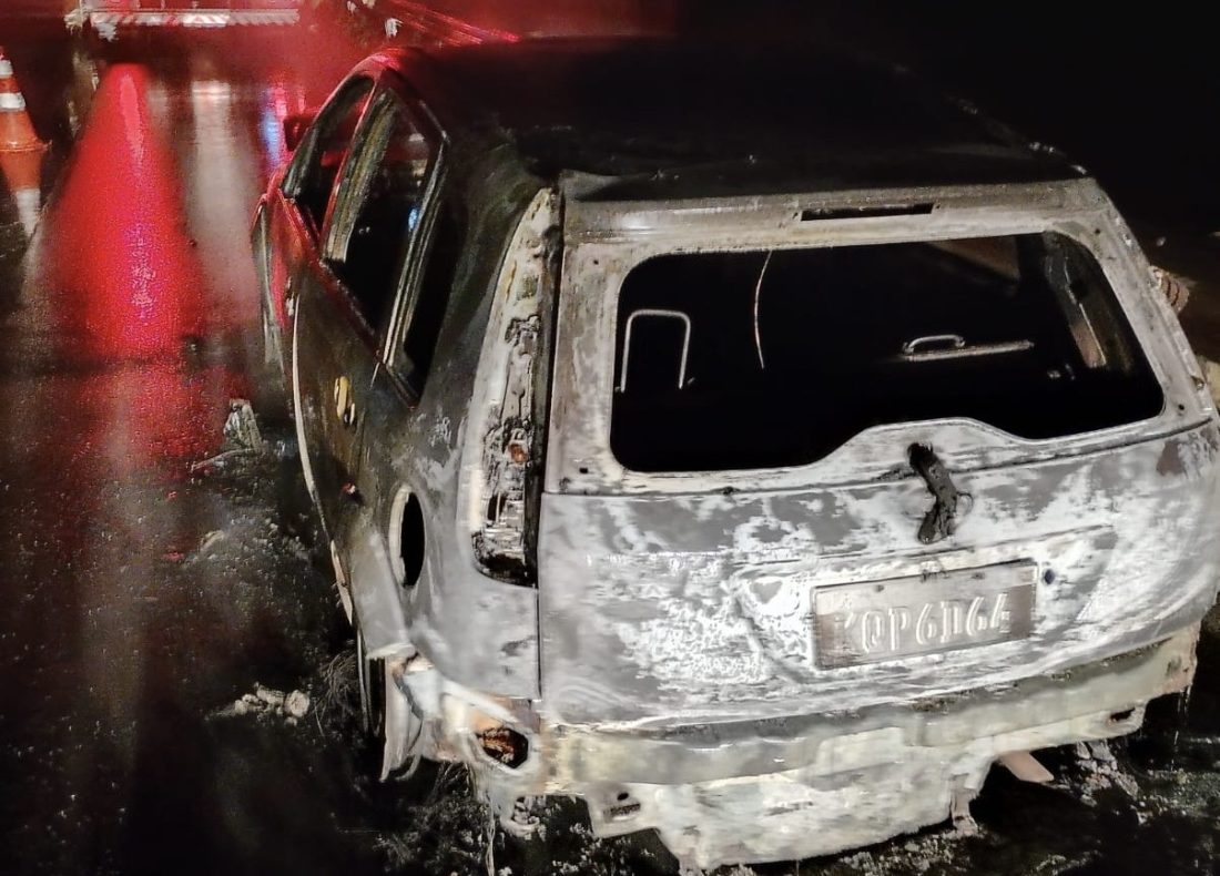 Um Ford Fiesta com placas de Ilicínea (MG), pegou fogo no acostamento da Rodovia Fernão Dias, nas proximidades do km 771, no...
