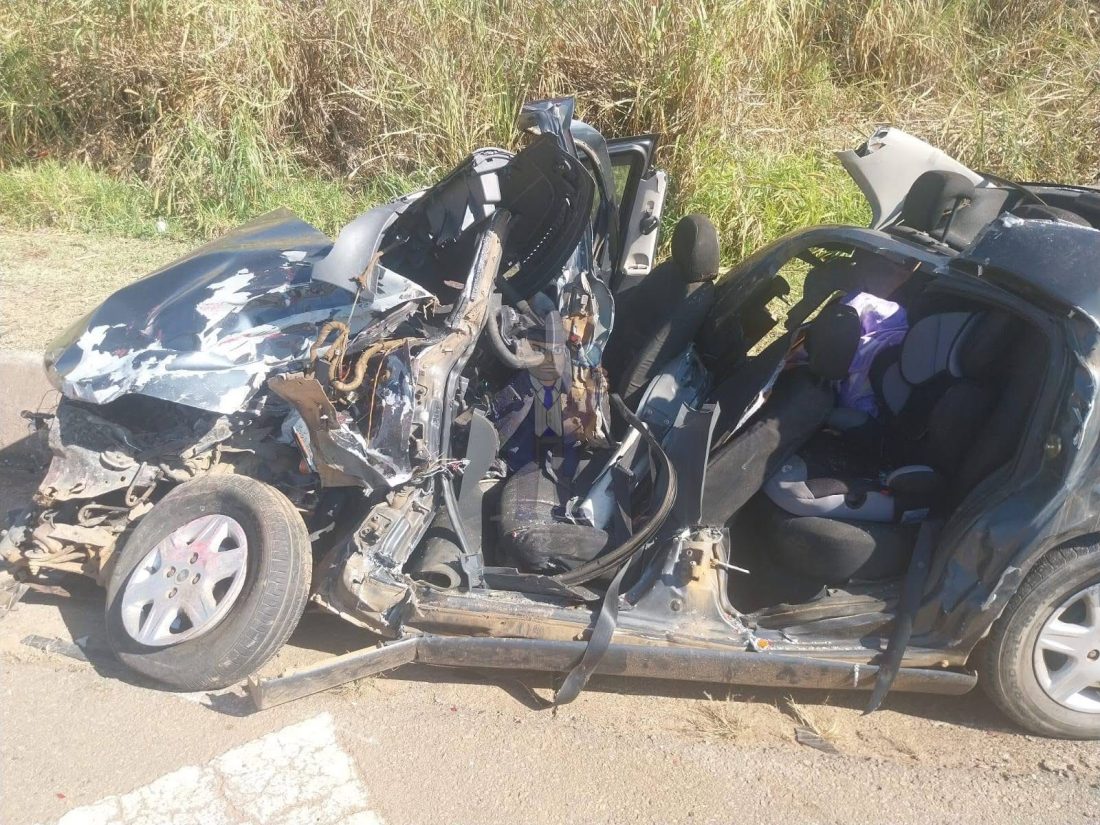 Colisão entre carro e carreta mata pai e filho; mãe está em estado grave