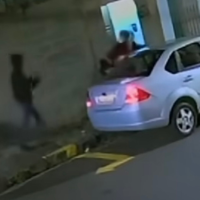 Imagens de câmeras de segurança registraram o momento em que uma mulher foi rendida por um criminoso armado, na noite deste domingo...