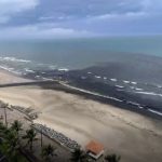 Uma extensa mancha escura com forte odor se espalhou pelo mar de...