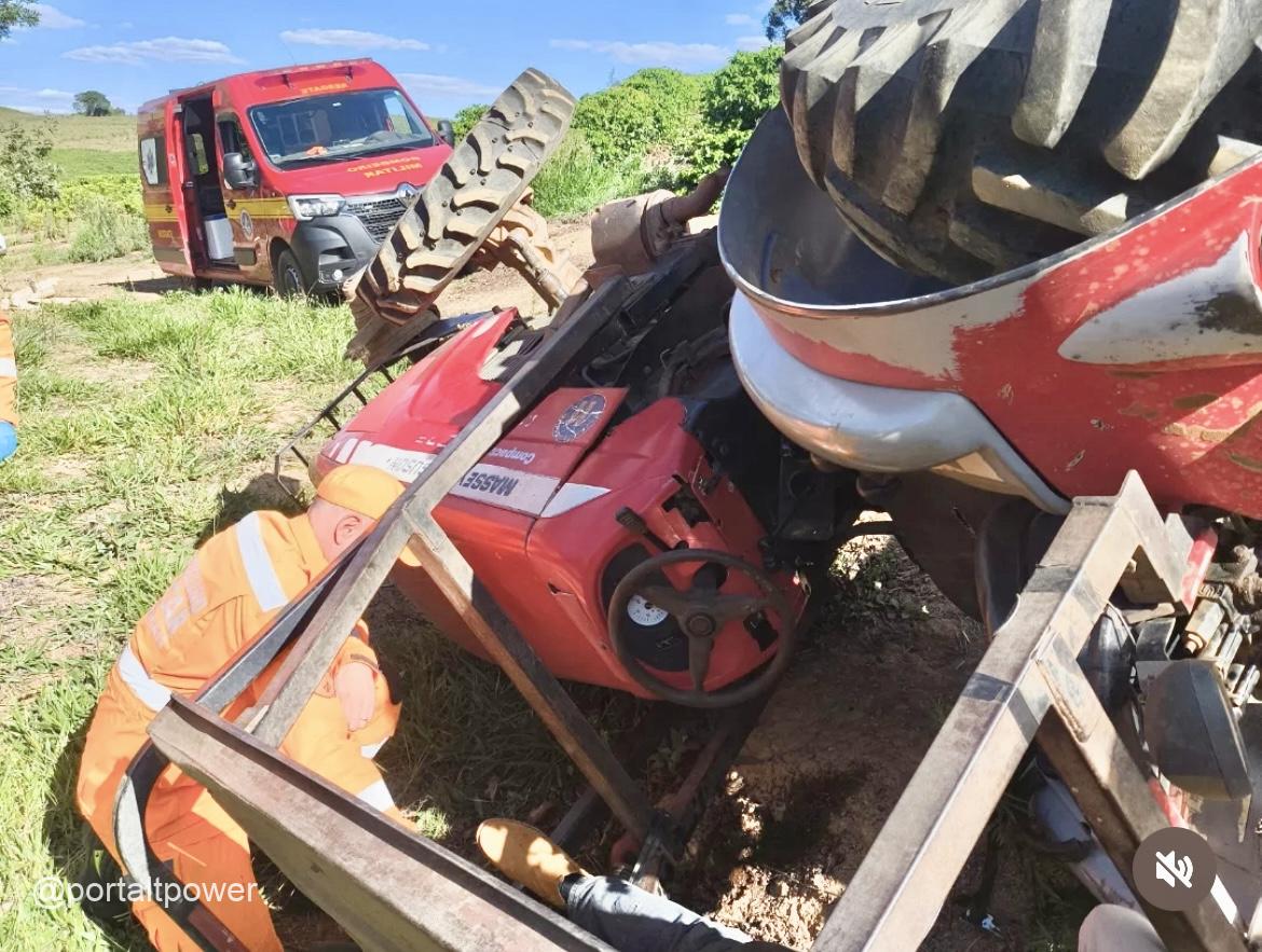 Um homem ficou ferido após o trator que conduzia tombar em uma propriedade rural próxima à comunidade do Tomba, na tarde de quarta-feira (22), em Lavras (MG).