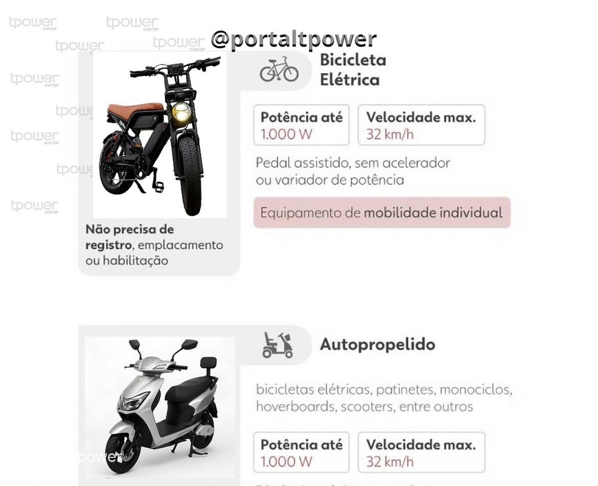 O limite de velocidade também é de 32 km/h, e a largura máxima é de 70 cm, com distância entre eixos de até 130 cm. A principal diferença em relação à bicicleta elétrica está no acelerador: se o veículo possuir esse dispositivo, ele deixa de ser classificado como bicicleta e passa a ser um autopropelido.